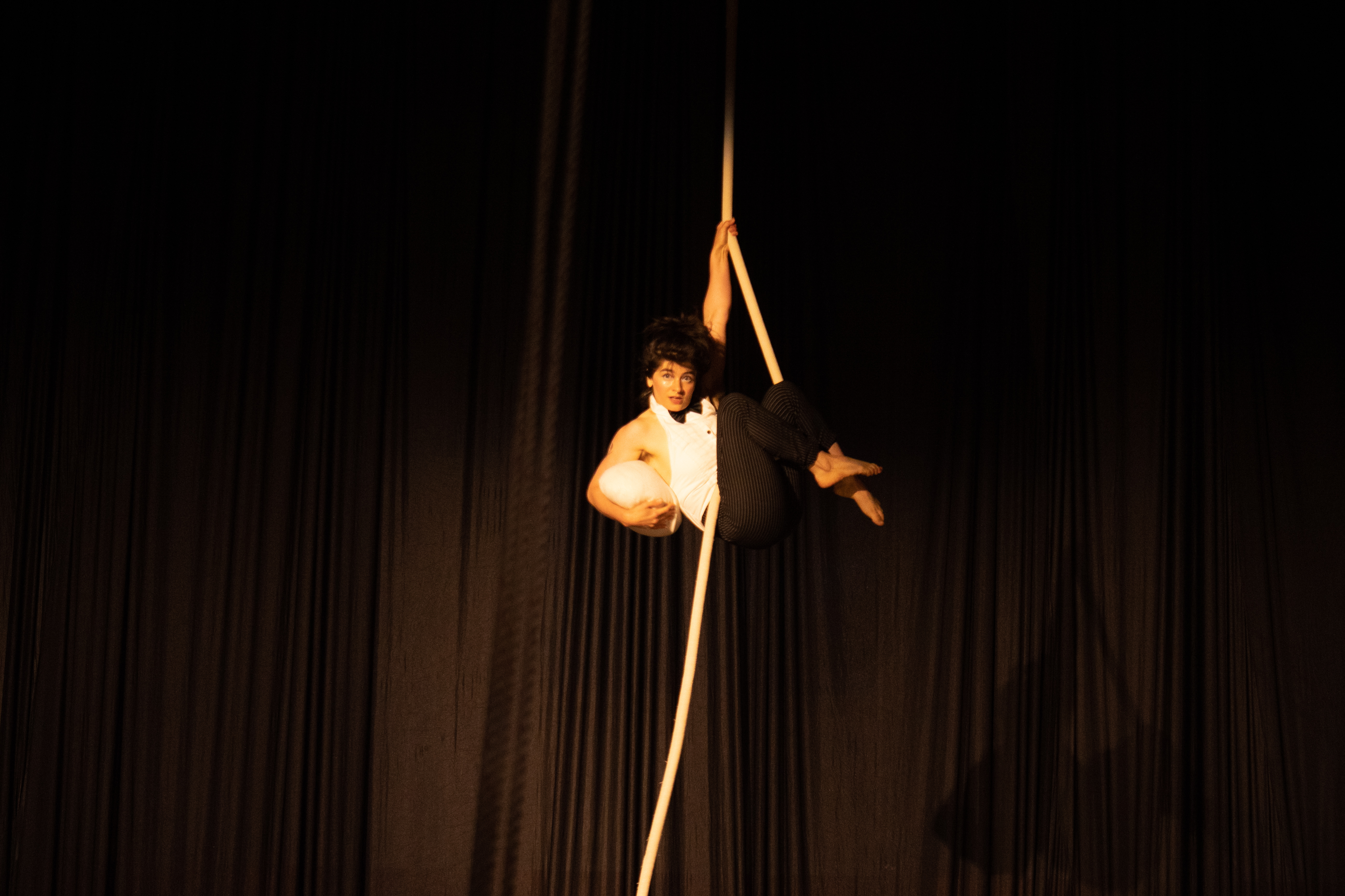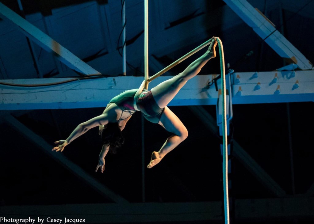 comes from the Blue Ridge Mountains, where she discovered her love for climbing on things. She graduated from the Professional Track Program at the New England Center for Circus Arts in 2016 and is a founding member of Big Teeth Performance Collective. Jess specializes in corde lisse, partner acrobatics, and dance trapeze. When not flipping through the air and climbing on her friends, Jess works as an RN and spends a lot of time outside. Find out more about Jess @jessintheair