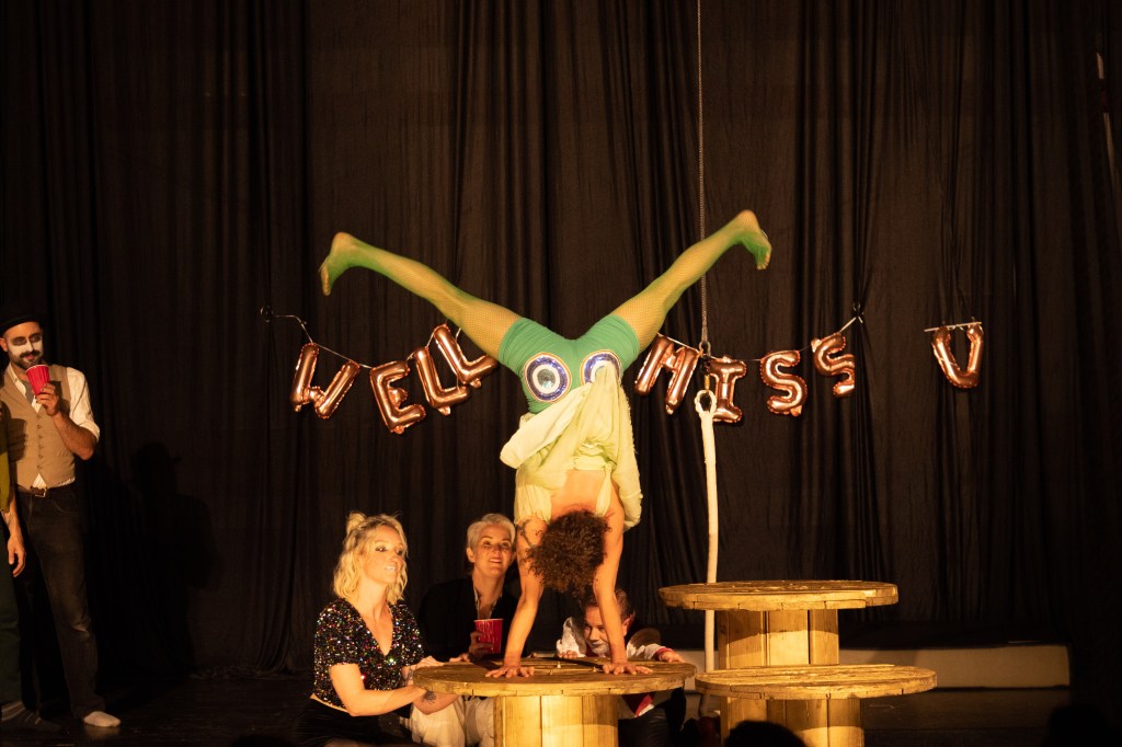 is a swinging trapeze phenom who moonlights as an innovative and unusual foot juggler, object manipulator, and lyric storyteller. From 2023-2024, she toured Goodbye Party the Show! with Big Teeth Performance Collective, and has performed for Artpark New York, HUP State Circus Festival, Nimble Arts, Theater Bizarre, the Ann Arbor Summer Festival, and more! Find out more about Violet @violetdefiantcircus